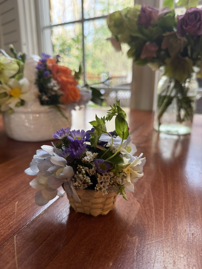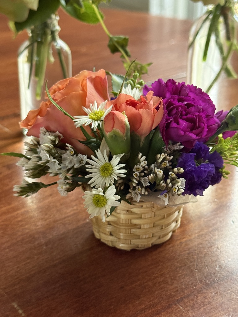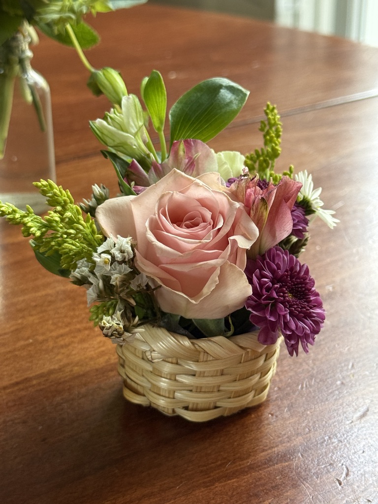 Bring lots of joy in the tiniest of packages! Woven tiny basket filled with colorful spring flowers