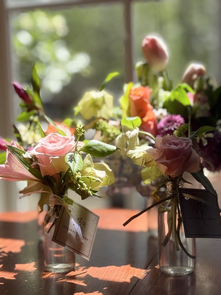 Tiny bouquets of fresh flowers, perfect for windowsills, nightstands, kitchen counters, or anywhere you’d like to see a bit of joy