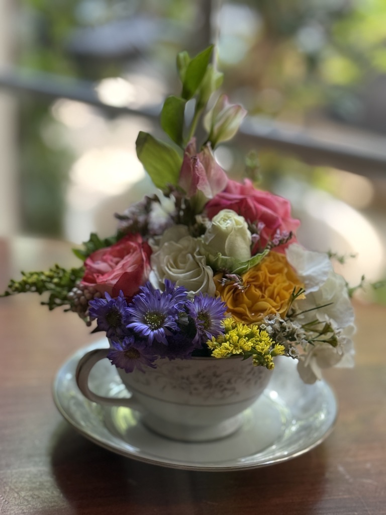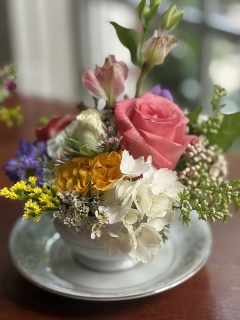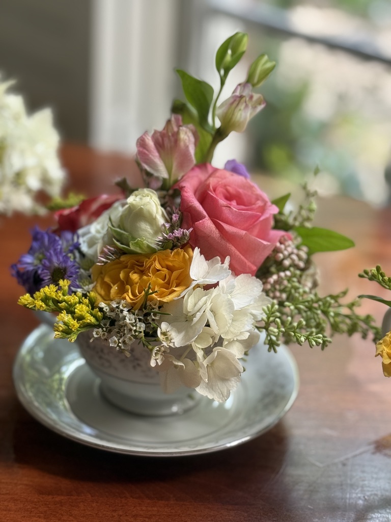 Treat your mom to the freshest assortment of hand-selected Spring blooms,* artfully arranged in a vintage china teacup with saucer. Each wrapped in cellophane with a bow & ready for gifting.