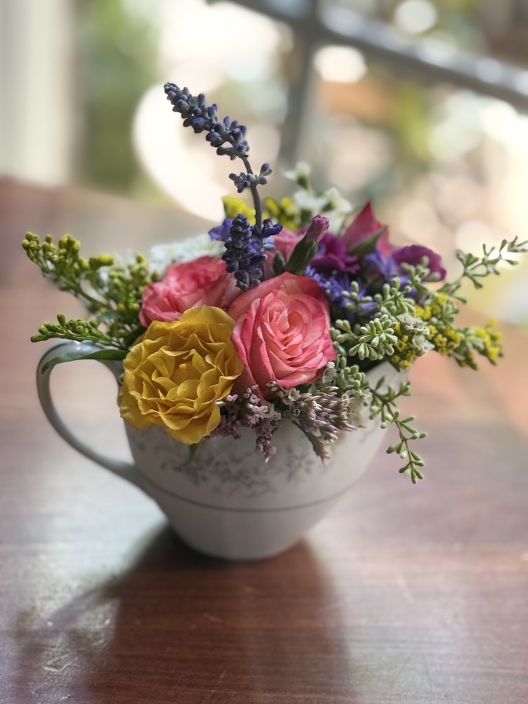 *Actual flowers and china pattern used will depend on availability, but the quality & size of the arrangement will be similar to what’s shown in the photos