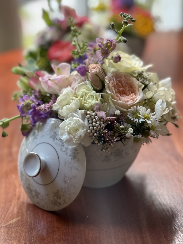 *Actual flowers and china pattern used will depend on availability, but the quality & size of the arrangement will be similar to what’s shown in the photos