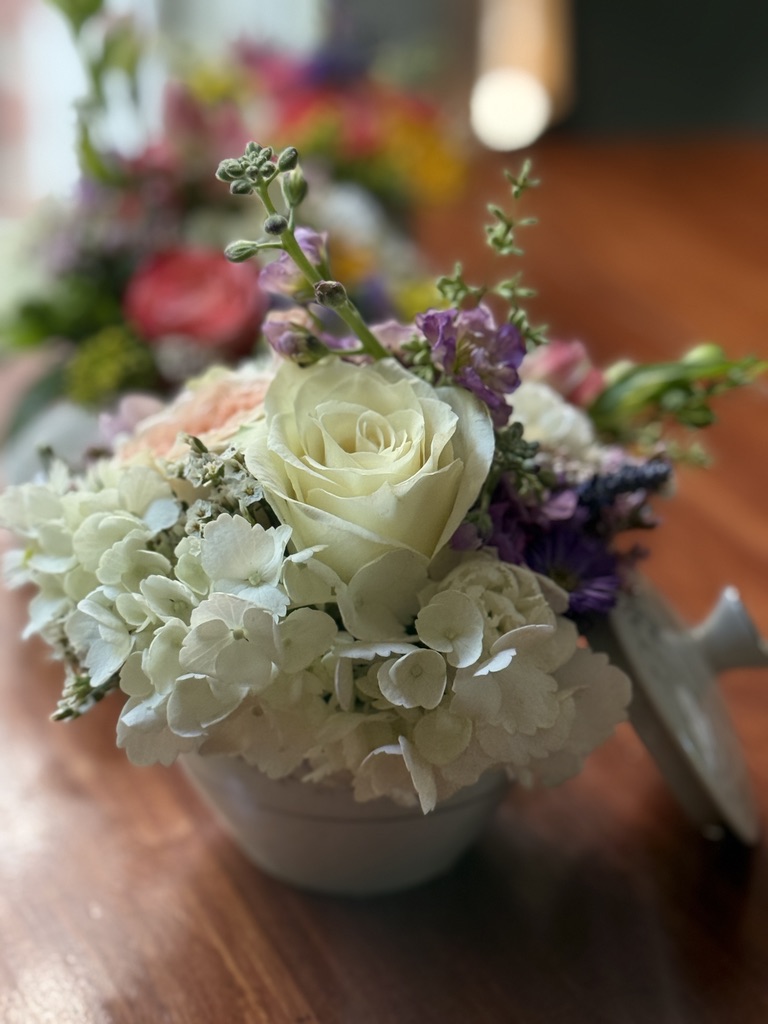 Treat your mom to the freshest assortment of hand-selected Spring blooms,* artfully arranged in a vintage china sugar bowl with lid. Each wrapped in cellophane with a bow & ready for gifting.